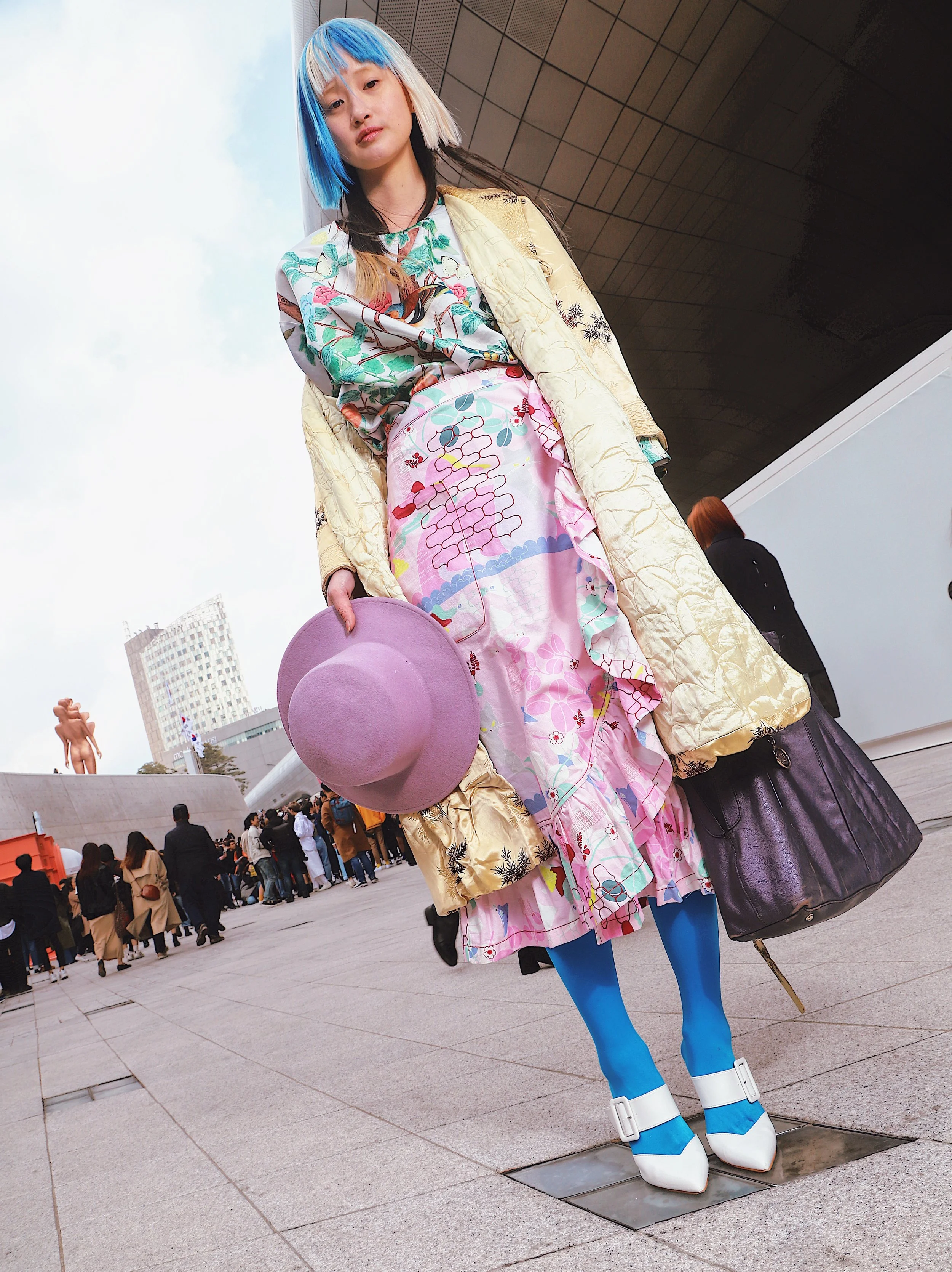 Most photographers go high; I go low. Fashion, from the ground up. A young fashionista from Hong Kong Kong at Seoul Fashion Week in October 2018.
