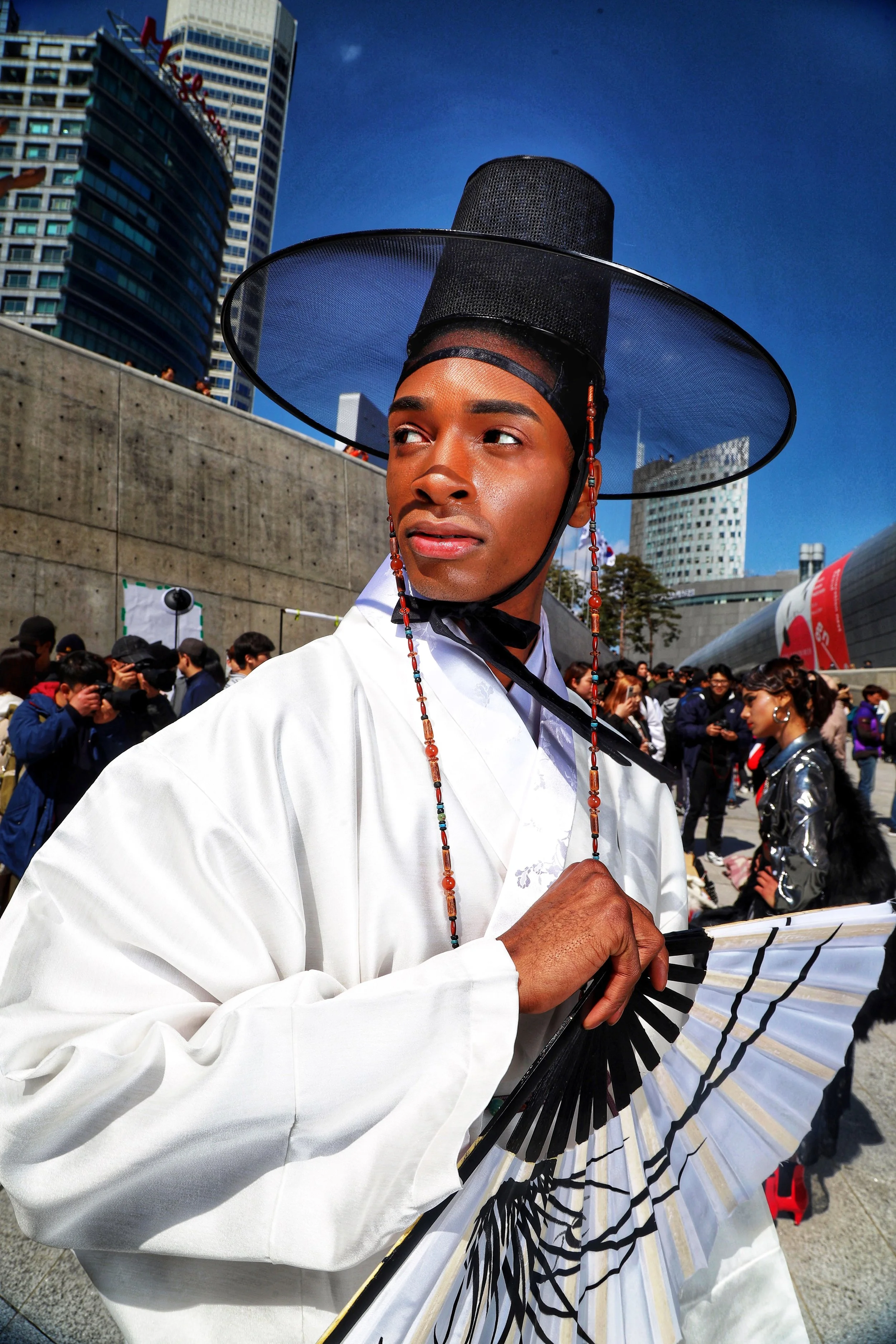 Model @joytv__ refracts the new, global interest in things joseon in October 2019 on the most diverse and intensely democratic global contact zone in Korea — the DDP ramp during Seoul Fashion Week.