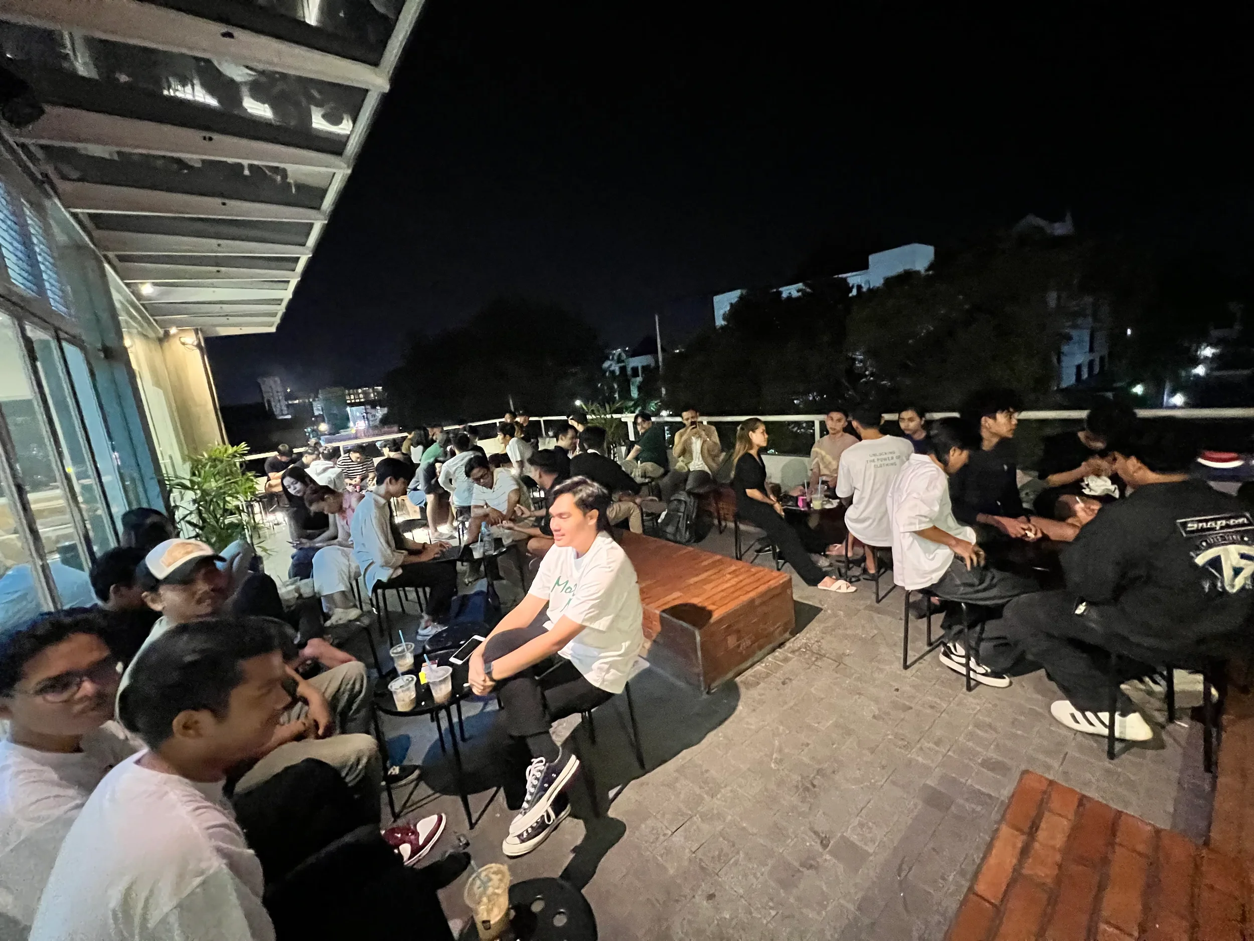 A youth hangout — a popular “Korean”-style coffee shop — in Yogyakarta, Indonesia back in July 2023. In a majority Muslim country that has a fraught relationship with bars and other places that sell alcohol, a cool coffee shop replaces the bar or nightclub, as it does here at the Cosan Seturan coffee shop on a late Friday night.